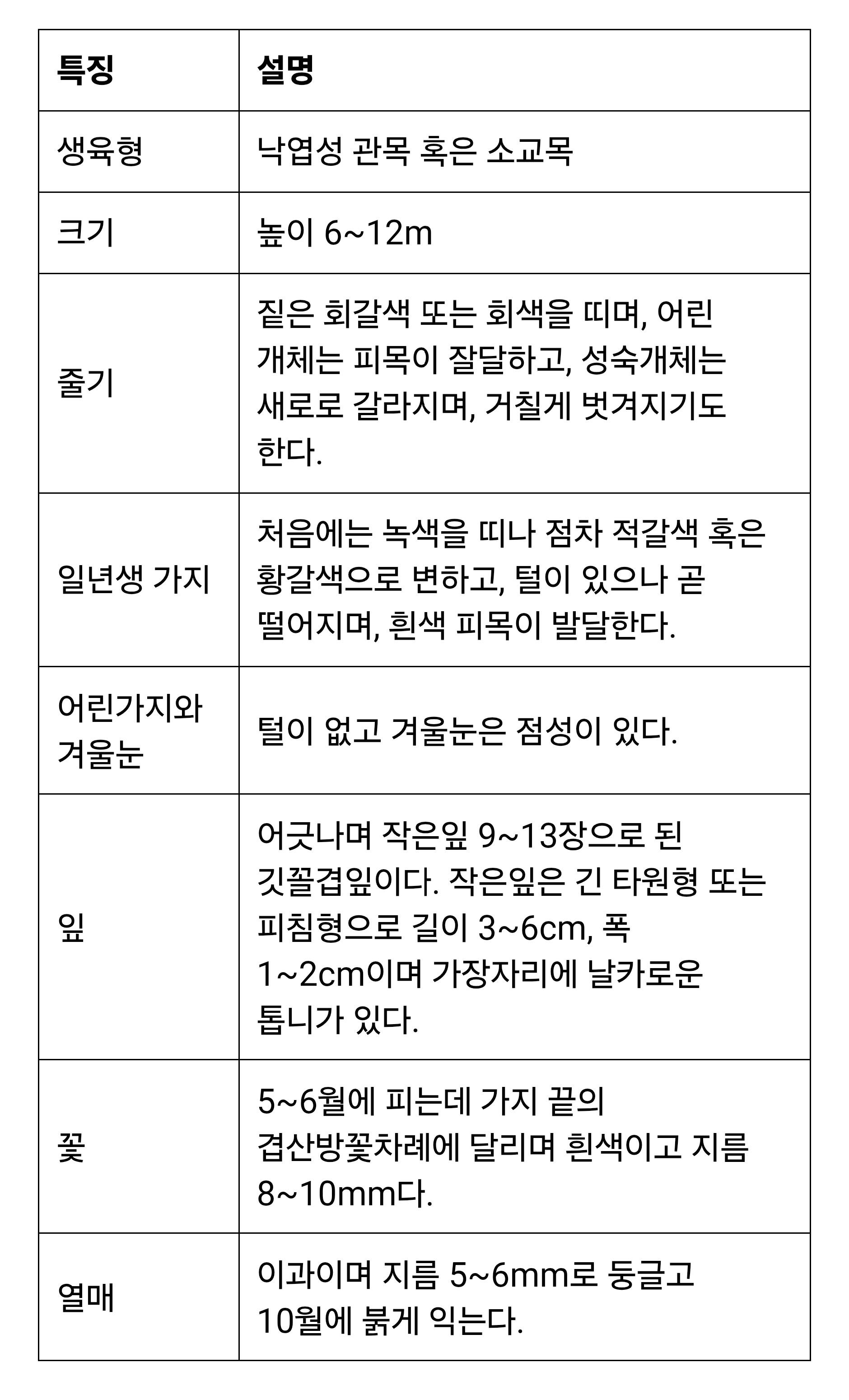 주로 황해도, 강원도 이남의 높은 산 능선에 주로 살고 있는데 꽃이 예뻐서 조경수, 가로수로 많이 식재되는 친구입니다.