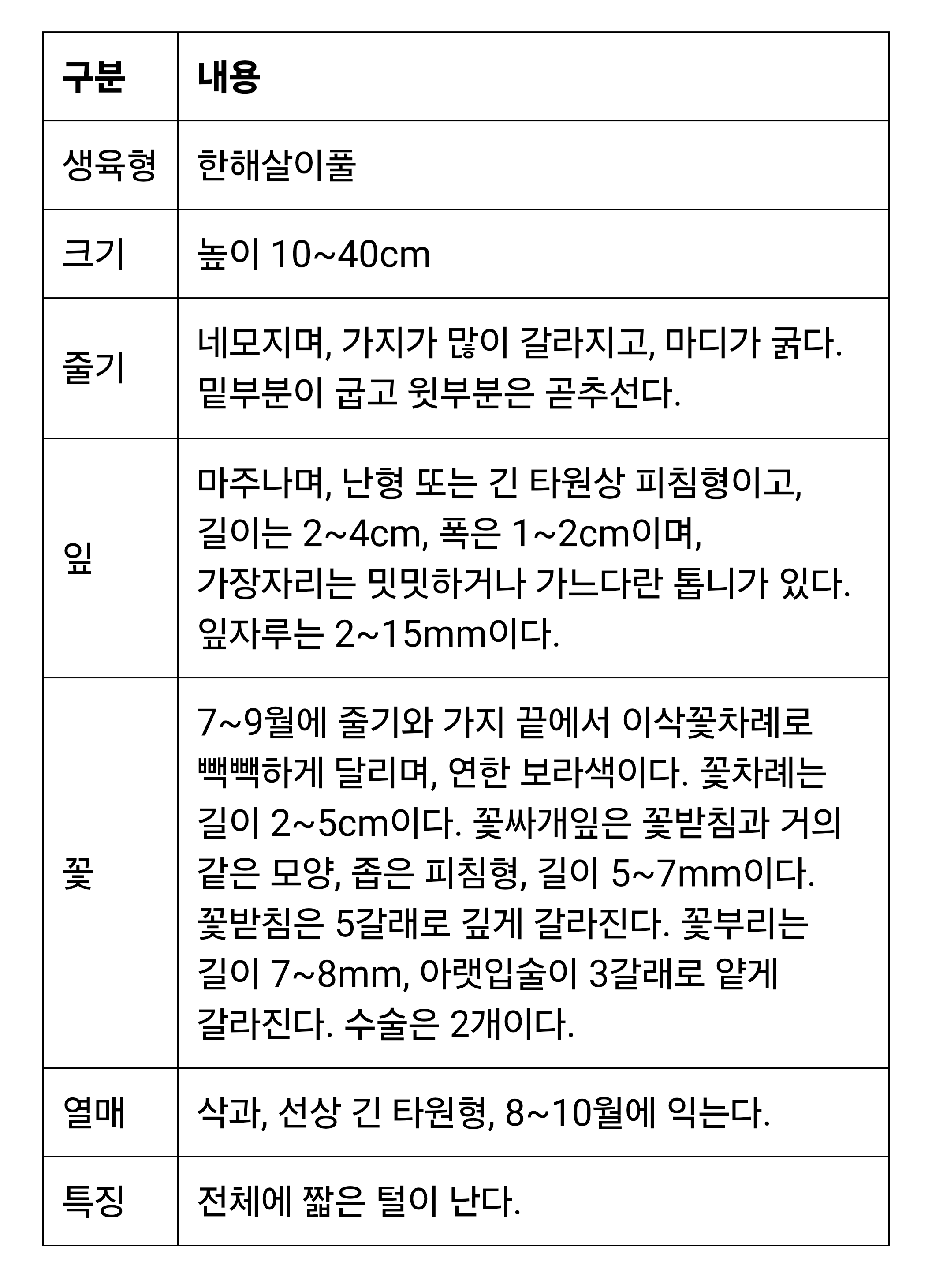 국명 : 쥐꼬리망초