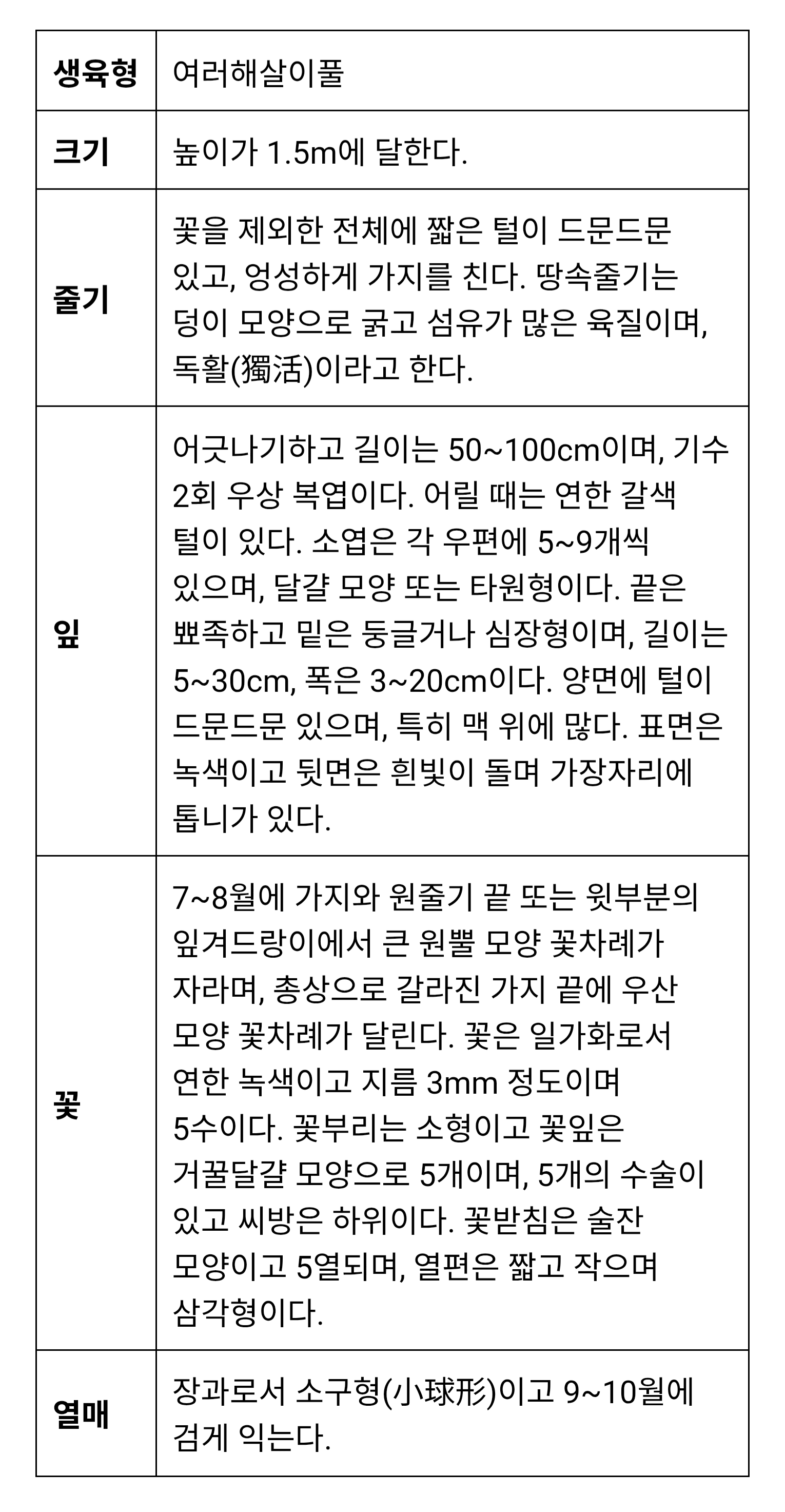 학명 : Aralia cordata var. continentalis (Kitag.) Y.C.Chu